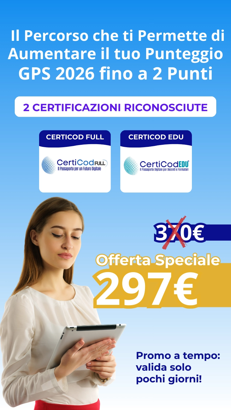 Secondo la più recente bozza del bando GPS 2026-2028, per i nuovi titoli sono valutabili esclusivamente le certificazioni informatiche rilasciate da soggetti accreditati da Accredia e conformi ai framework DigComp 2.2 e DigCompEdu.